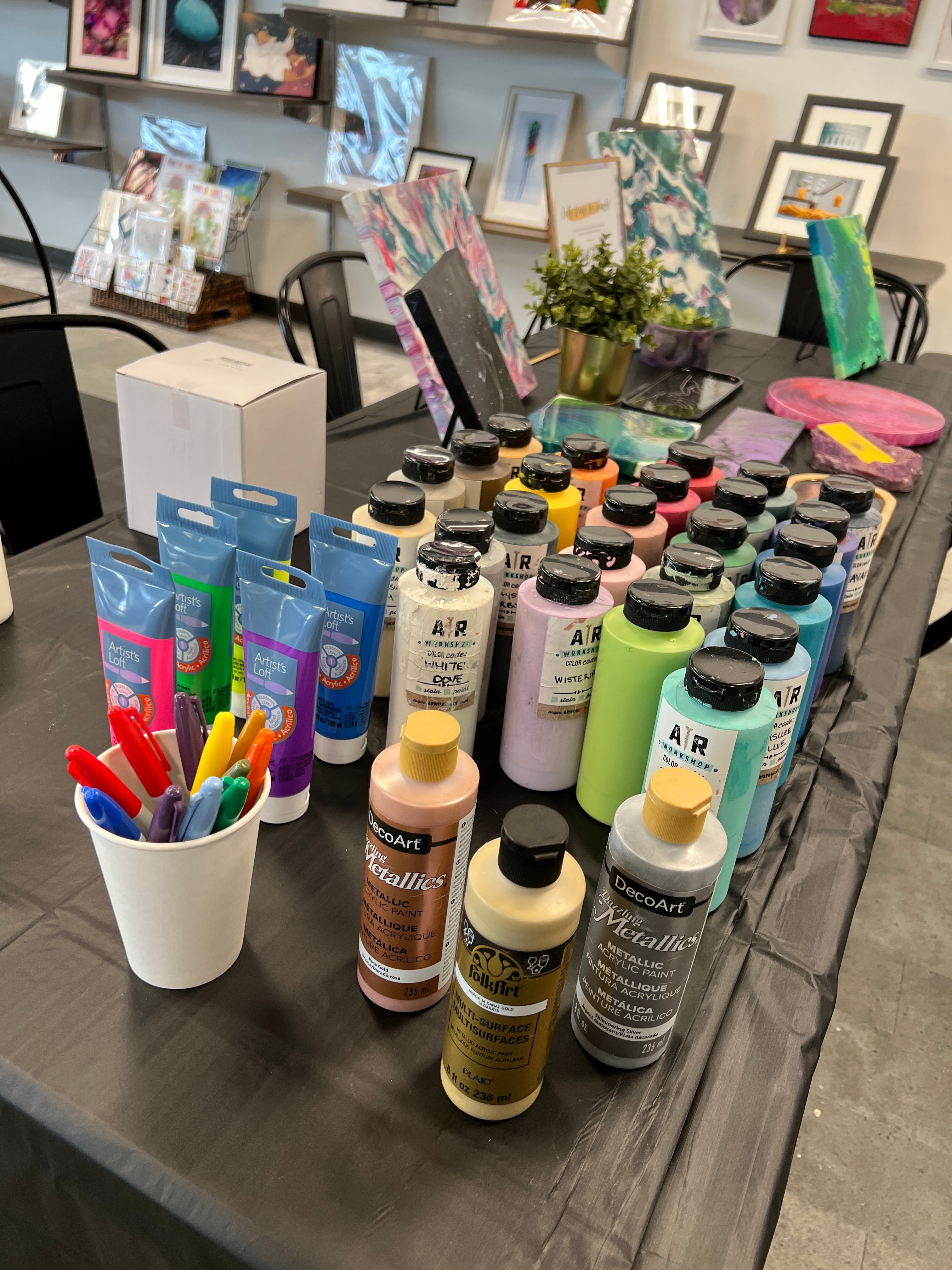 We offer classes in Columbia, MD and occasionally in Gaithersburg, MD with plans to expand to more locations. Don't worry if you're not in our area—we also bring the paint-pour experience to your doorstep! We are based in Baltimore, MD and are open to traveling within the DMV area. Classes can be scheduled upon request, allowing flexibility for individuals, companies, art centers, and more.